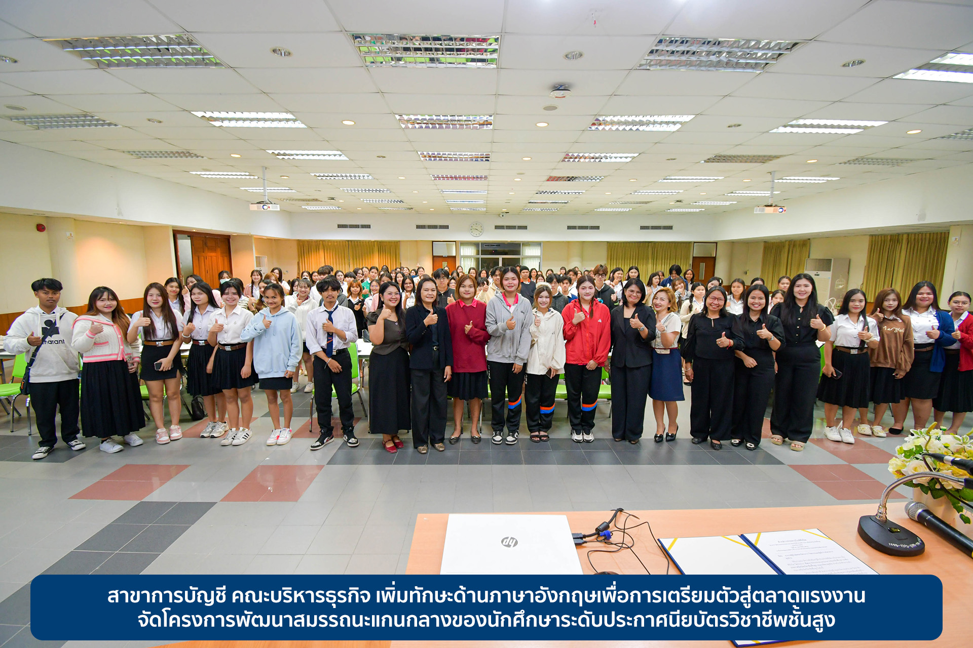 สาขาการบัญชี คณะบริหารธุรกิจ เพิ่มทักษะด้านภาษาอังกฤษเพื่อการเตรียมตัวสู่ตลาดแรงงาน จัดโครงการพัฒนาสมรรถนะแกนกลางของนักศึกษาระดับประกาศนียบัตรวิชาชีพชั้นสูง