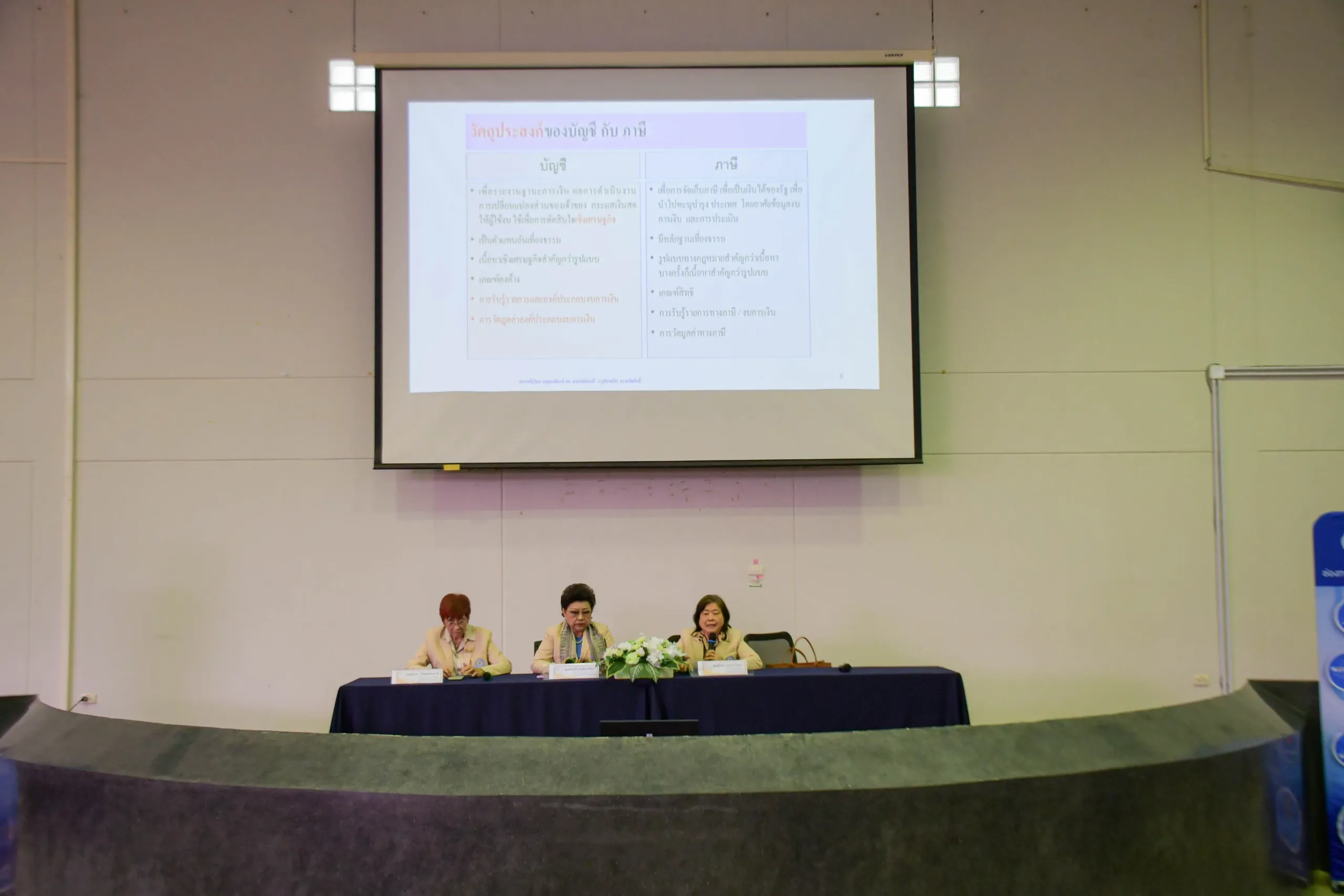 การอบรมในครั้งนี้มุ่งเน้นการพัฒนาศักยภาพผู้ประกอบวิชาชีพบัญชีให้มีความรู้ความเข้าใจที่ทันสมัย ครอบคลุมทั้งแนวทางการพัฒนาวิชาชีพ ความแตกต่างระหว่างหลักบัญชีกับหลักภาษีด้านรายจ่าย ไม่ว่าจะเป็น รายจ่ายเกี่ยวกับสินทรัพย์ รายจ่ายต้องห้ามตามประมวลรัษฎากร สรุปหลักการบันทึกบัญชีเป็นค่าใช้จ่าย ตลอดจนประเด็นสำคัญและข้อกำหนดตามกฎหมายที่เกี่ยวข้อง นอกจากนี้ ยังมีการบรรยายในหัวข้อจรรยาบรรณของผู้ประกอบวิชาชีพบัญชี ซึ่งเน้นหลักการสำคัญ 6 ประการ ได้แก่ ความซื่อสัตย์สุจริต ความเที่ยงธรรมและความเป็นอิสระ ความรู้ ความสามารถ ความเอาใจใส่และการรักษามาตรฐานในการปฏิบัติงาน การรักษาความลับ พฤติกรรมทางวิชาชีพ และความโปร่งใส เพื่อเสริมสร้างมาตรฐานและความน่าเชื่อถือในวิชาชีพบัญชี โดยวิทยากร คุณวินิจ ศิลามงคล นายกสภาวิชาชีพบัญชี ในพระบรมราชูปถัมภ์ คุณสุวิมล กฤตยาเกียรณ์ กรรมการและนายทะเบียน สภาวิชาชีพ ในพระบรมราชูปถัมภ์ คุณชวนา วิวัฒน์พนชาติ อุปนายก กรรมการ และเหรัญญิก สภาวิชาชีพ ในพระบรมราชูปถัมภ์ และคุณพรรณี วรวุฒิจงสถิต กรรมการในคณะกรรมการวิชาชีพบัญชีด้านการบัญชีภาษีอากร สภาวิชาชีพ ในพระบรมราชูปถัมภ์