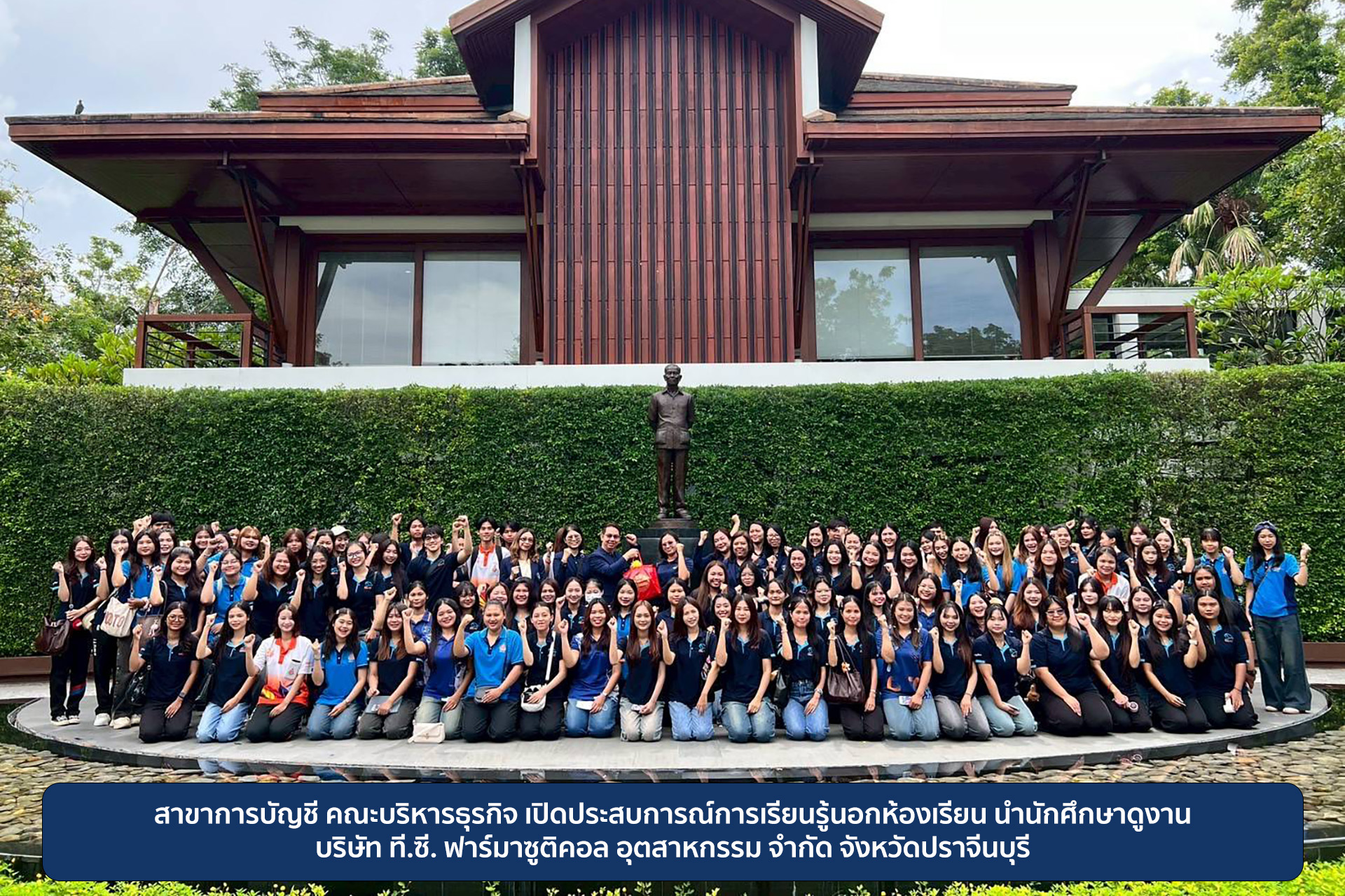 สาขาการบัญชี คณะบริหารธุรกิจ เปิดประสบการณ์การเรียนรู้นอกห้องเรียน นำนักศึกษาดูงาน บริษัท ที.ซี. ฟาร์มาซูติคอล อุตสาหกรรม จำกัด จังหวัดปราจีนบุรี วันที่ 24 กรกฎาคม 2568 สาขาการบัญชี คณะบริหารธุรกิจ จัดโครงการเรียนรู้นอกห้องเรียนสาขาการบัญชี ซึ่งเป็นกิจกรรมที่ 2 โดยอาจารย์ ดร.สมศักดิ์ จินตวัฒนกุล หัวหน้าสาขาการบัญชี พร้อมด้วยคณาจารย์สาขาการบัญชี นำนักศึกษาสาขาการบัญชีชั้นปีที่ 4/4 ไปศึกษาดูงาน ณ บริษัท ที.ซี. ฟาร์มาซูติคอล อุตสาหกรรม จำกัด จังหวัดปราจีนบุรี ทั้งนี้ เพื่อเพิ่มพูนความรู้และความชำนาญเฉพาะด้านแก่นักศึกษาและเปิดโอกาสให้กับนักศึกษาได้เรียนรู้แลกเปลี่ยนประสบการณ์ตรงจากแหล่งเรียนรู้นอกห้องเรียน วีณา หนูสันเทียะ: ข้อมูล/ภาพประกอบ อติโรจน์ วงษ์วัชรศักดิ์: เรียบเรียงข่าว