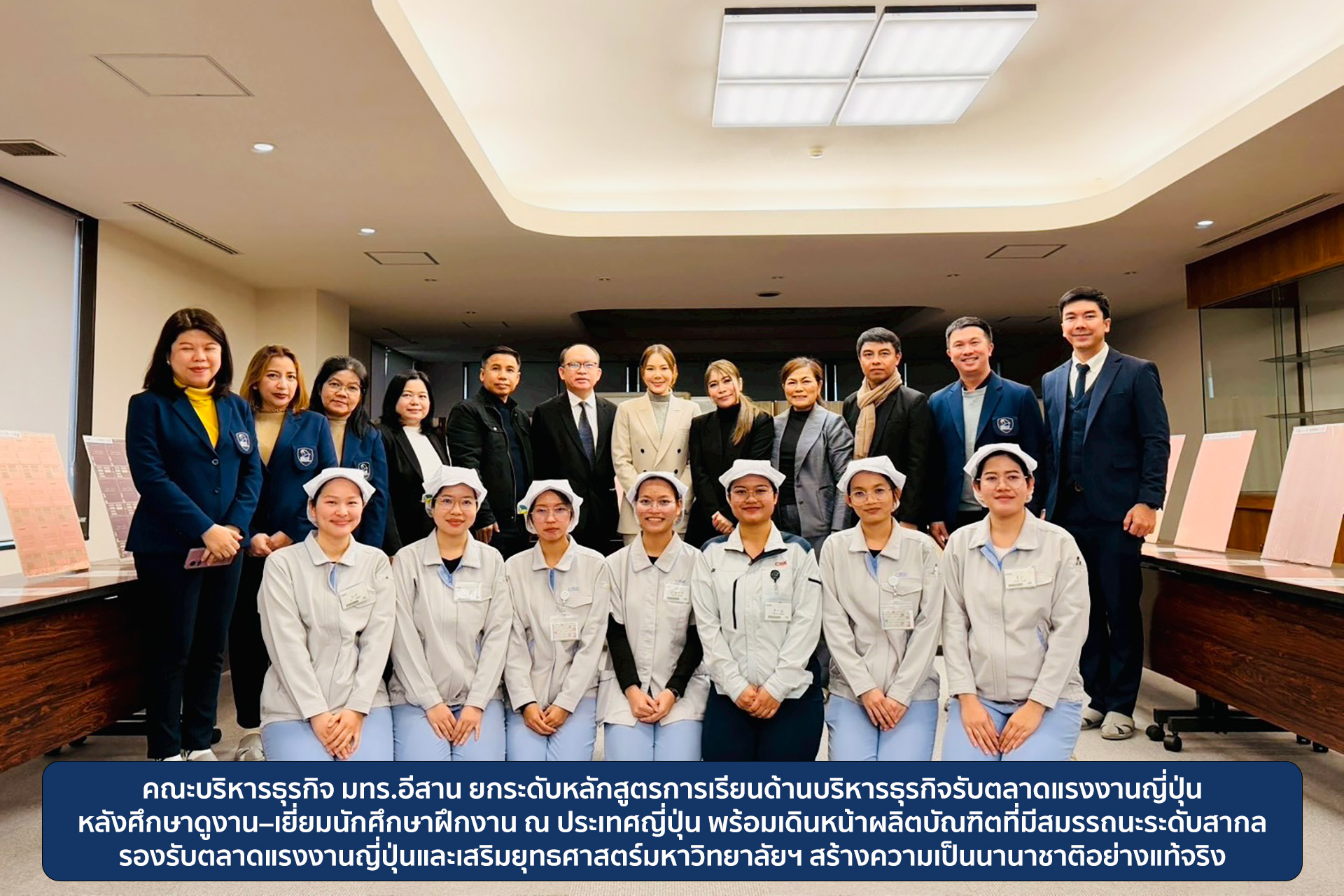 คณะบริหารธุรกิจ มทร.อีสาน ยกระดับหลักสูตรการเรียนด้านบริหารธุรกิจรับตลาดแรงงานญี่ปุ่น หลังศึกษาดูงาน–เยี่ยมนักศึกษาฝึกงาน ณ ประเทศญี่ปุ่น พร้อมเดินหน้าผลิตบัณฑิตที่มีสมรรถนะระดับสากล รองรับตลาดแรงงานญี่ปุ่นและเสริมยุทธศาสตร์มหาวิทยาลัยฯ สร้างความเป็นนานาชาติอย่างแท้จริง