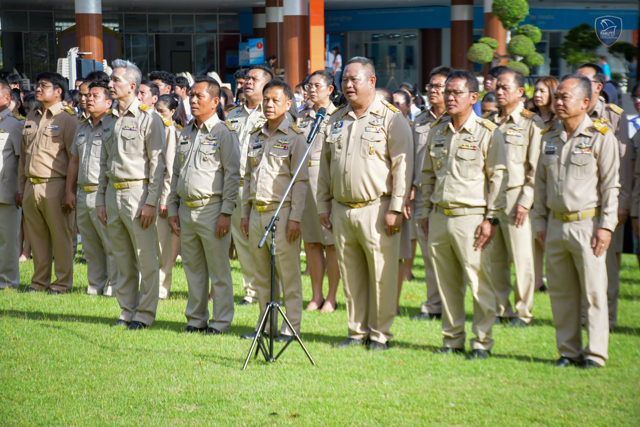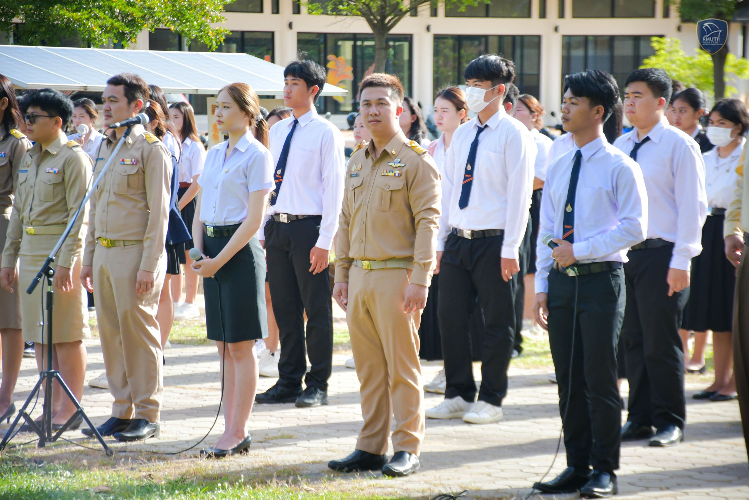 วันที่ 4 สิงหาคม 2568 คณะบริหารธุรกิจ มทร.อีสาน ร่วมกิจกรรมร้องเพลงชาติไทยให้ดังกึกก้อง ส่งกำลังใจให้เหล่าทหารกล้าผู้เสียสละและพี่น้องคนไทยทุกคน ณ บริเวณลานหน้าเสาธง บริเวณหน้าอาคารคณะบริหารธุรกิจ มทร.อีสาน โดยมีรองศาสตราจารย์ ดร.โฆษิต ศรีภูธร อธิการบดี มทร.อีสาน รองอธิการบดี ผู้ช่วยอธิการบดี พร้อมด้วย อาจารย์ ดร.อนิรุธ พิพัฒน์ประภา คณบดีคณะบริหารธุรกิจ รองคณบดี ผู้ช่วยคณบดี ข้าราชการ บุคลากร และนักศึกษา คณะบริหารธุรกิจ และจากหน่วยงานต่าง ๆ ในมหาวิทยาลัยฯ เข้าร่วมกิจกรรมดังกล่าว โดยกิจกรรมในครั้งนี้จัดขึ้นเพื่อส่งกำลังใจให้กับเหล่าทหารกล้า อาสาสมัคร ตำรวจตระเวรชายแดน รวมถึงประชาชนผู้อพยพจากเหตุการณ์ความไม่สงบบริเวณชายแดนไทย–กัมพูชา เป็นการแสดงออกและปลูกฝังจิตสำนึกในการรักชาติ แสดงพลังเชิงสัญลักษณ์และความภาคภูมิใจในความเป็นไทย