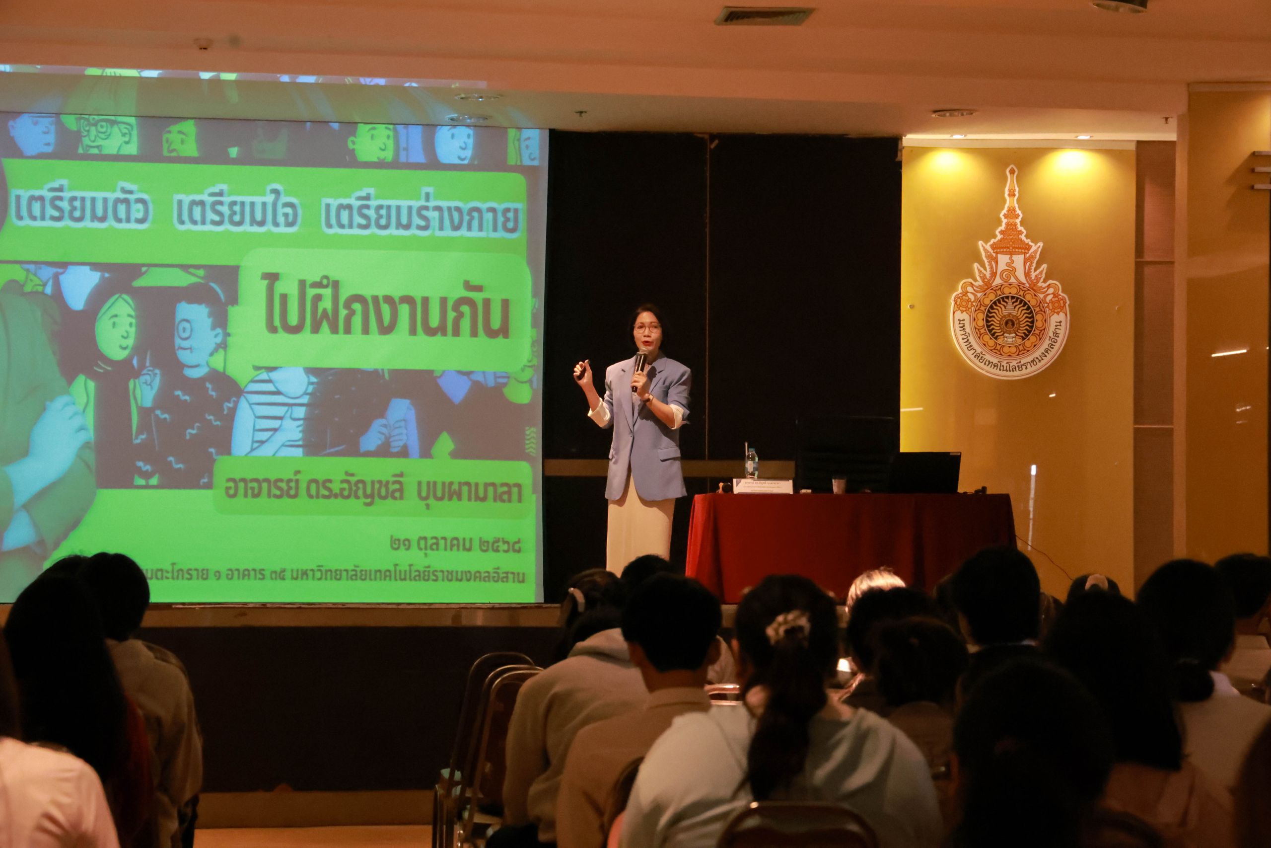 วันที่ 21 ตุลาคม 2568 คณะบริหารธุรกิจ จัดโครงการปฐมนิเทศนักศึกษาสหกิจศึกษา ประจำภาคการศึกษาที่ 2 ปีการศึกษา 2568 ณ ห้องประชุมตะโกราย 1 อาคารสำนักส่งเสริมวิชาการและงานทะเบียน มทร.อีสาน โดยอาจารย์ ดร.อนิรุธ พิพัฒน์ประภา คณบดีคณะบริหารธุรกิจ มอบหมายให้อาจารย์จินตนา เข็มประสิทธิ์ รองคณบดีฝ่ายวิชาการละวิจัย เป็นประธานกล่าวเปิดโครงการ ซึ่งกิจกรรมในครั้งนี้ ทางคณะฯ ได้เชิญอาจารย์ ดร.อัญชลี บุบผามาลา อาจารย์ประจำสาขาเทคโนโลยีสารสนเทศและการสื่อสาร คณะวิทยาศาสตร์และศิลปศาสตร์ มาบรรยายและแนะนำนักศึกษาเกี่ยวกับการฝึกสหกิจศึกษาในสถานประกอบการให้ประสบความสำเร็จ และอาจารย์ ดร.สุดา ทิพย์ประเสริฐ ผู้ช่วยคณบดีฝ่ายวิชาการและวิจัย คณะบริหารธุรกิจ มาให้ความรู้นักศึกษาในการใช้งานระบบฝึกประสบการณ์วิชาชีพ สำหรับนักศึกษาที่จะออกปฏิบัติสหกิจศึกษาในสถานประกอบการ