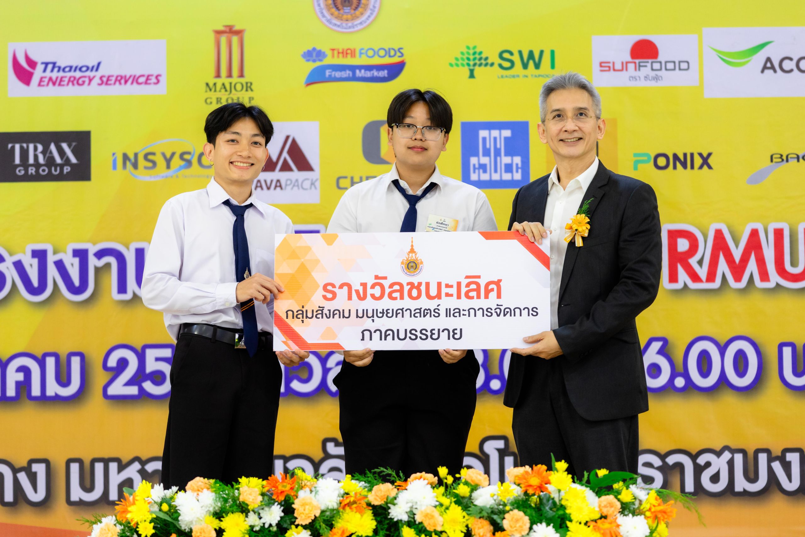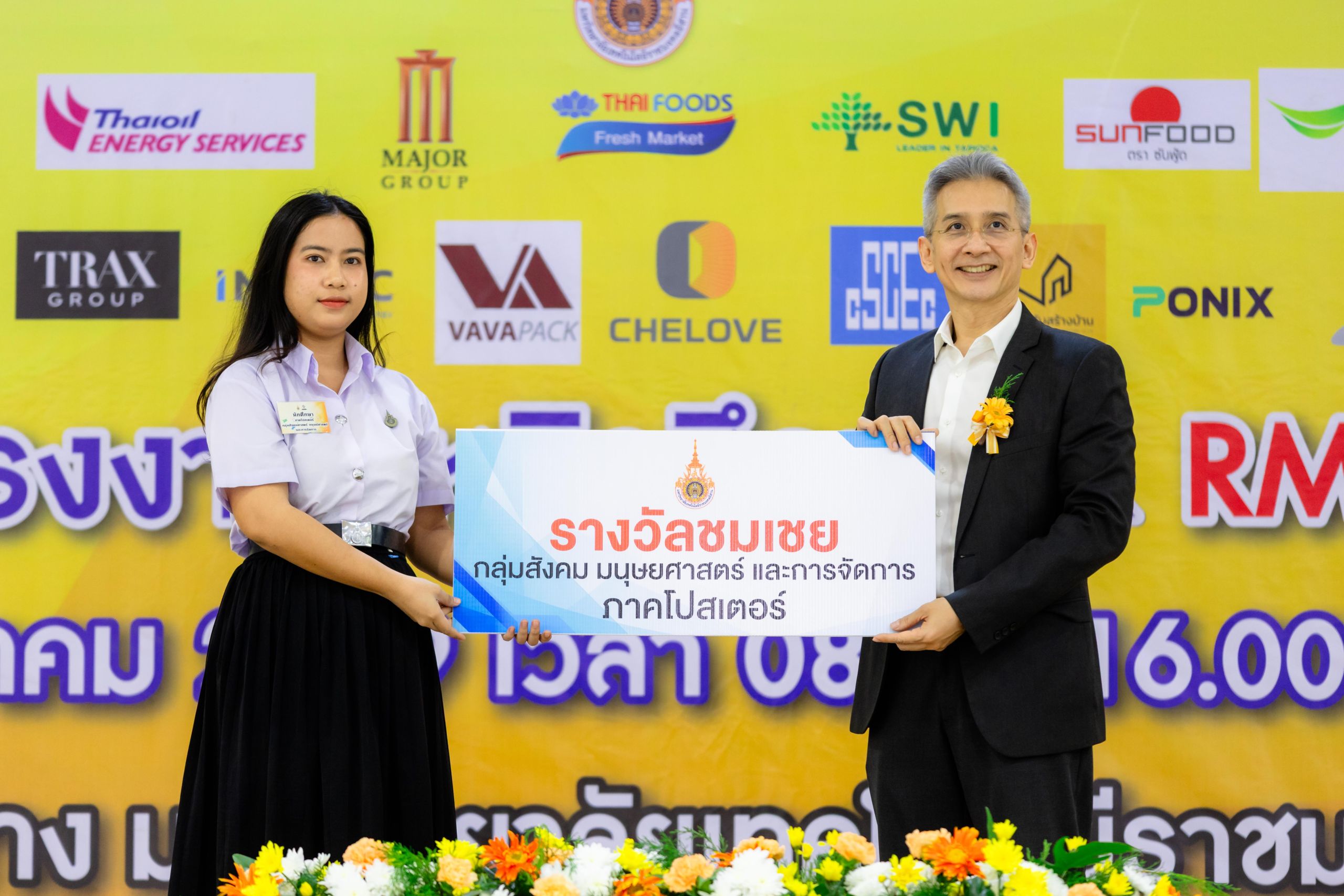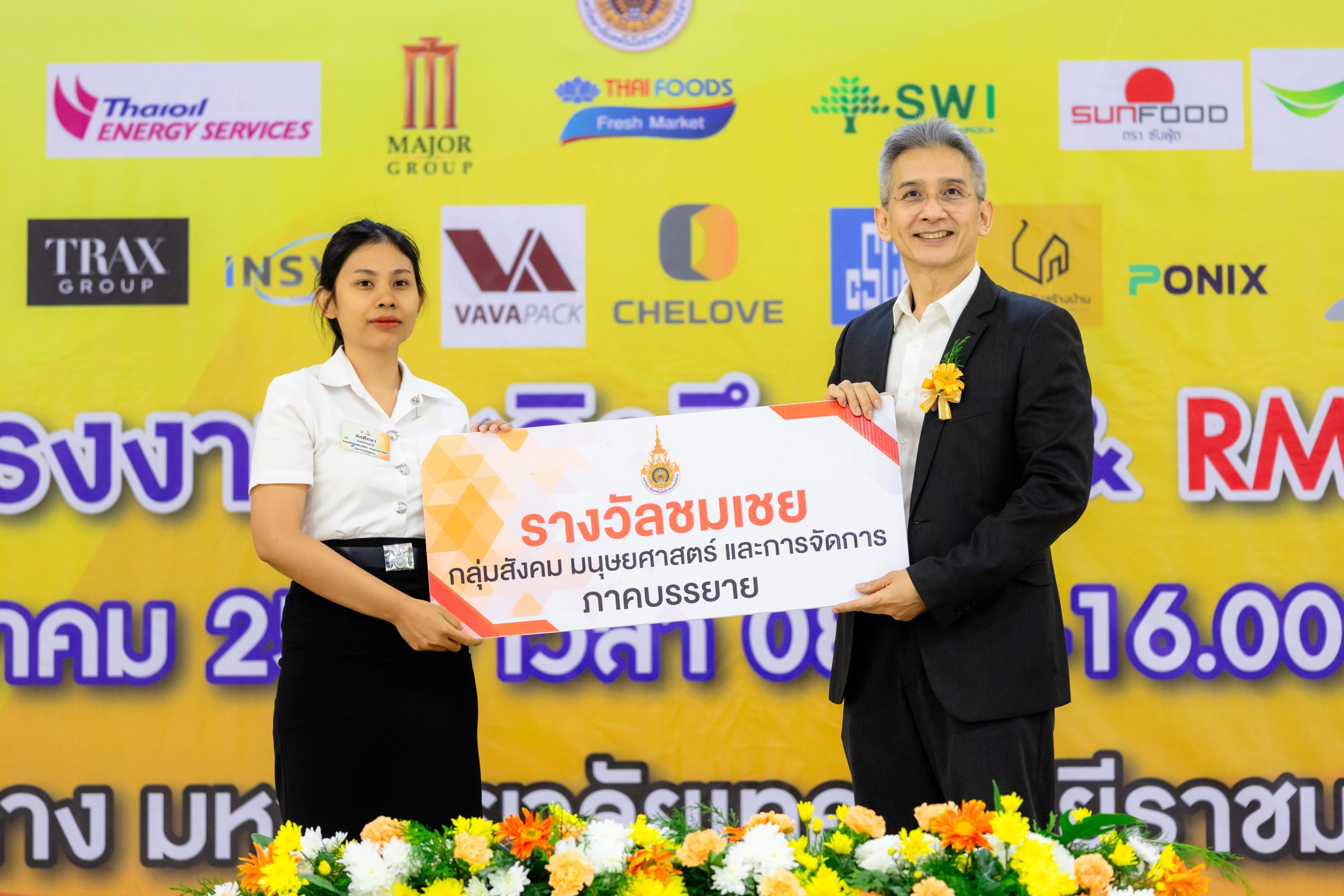 - รางวัลชมเชย ได้แก่ ผลงาน “การปรับปรุงกระบวนการส่งสินค้าผ่านระบบล็อกอัตโนมัติ เพื่อเพิ่มประสิทธิภาพในการขายฐานลูกค้าโดยการประยุกต์ใช้ VBA Macro” โดย นางสาวภัคจิรา โก้ย นักศึกษาสาขาวิชาการจัดการ-การจัดการโลจิสติกส์