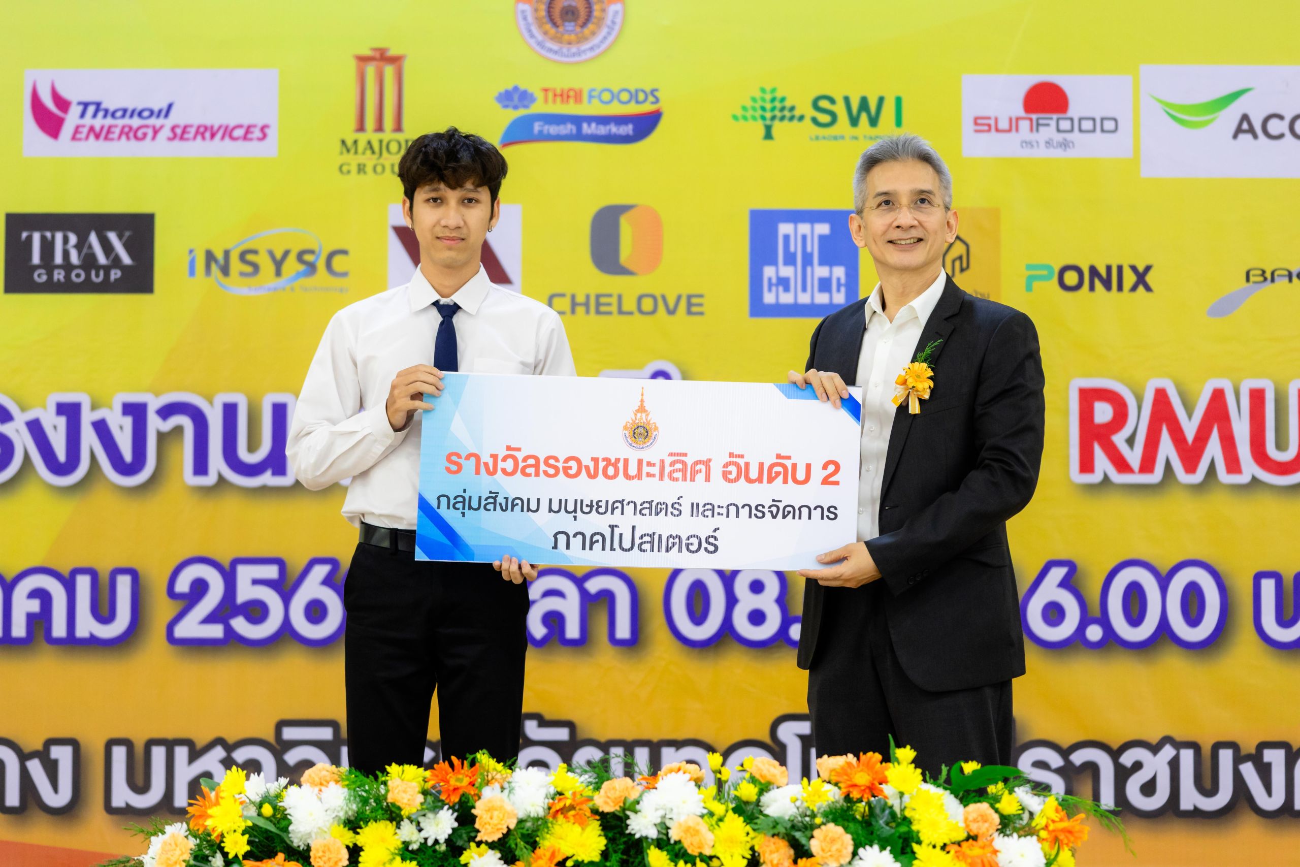 - รองชนะเลิศอันดับที่ 2 ได้แก่ ผลงาน “การเพิ่มประสิทธิภาพการจัดการคลังสินค้า ด้วยเทคนิคเบลลีน” โดย นายพิริพล วงษ์ประเสริฐ นักศึกษาสาขาวิชาการจัดการ-การจัดการอุตสาหกรรม