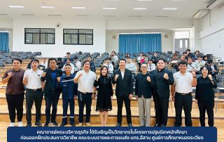 คณาจารย์คณะบริหารธุรกิจ ได้รับเชิญเป็นวิทยากรในโครงการปฐมนิเทศนักศึกษาก่อนออกฝึกประสบการวิชาชีพ คณะระบบรางและการขนส่ง มทร.อีสาน ศูนย์การศึกษาหนองระเวียง วันที่ 30 ตุลาคม 2568 อาจารย์ ดร.อนิรุธ พิพัฒน์ประภา คณบดีคณะบริหารธุรกิจ มอบหมายให้ อาจารย์ปุริม หนุนนัด หัวหน้าสาขาการตลาด และอาจารย์วิทยา [...]