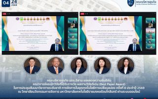 คณะบริหารธุรกิจ มทร.อีสาน ขอแสดงความยินดีกับคณาจารย์และนักวิจัยที่ได้รับรางวัลผลงานวิจัยดีเด่น (Best Paper Award) ในการประชุมสัมมนาวิชาการระดับชาติ การจัดการในยุคเทคโนโลยีการเปลี่ยนแปลง ครั้งที่ 8 ประจำปี 2569 ณ วิทยาลัยนวัตกรรมการจัดการ มหาวิทยาลัยเทคโนโลยีราชมงคลรัตนโกสินทร์ ผ่านระบบออนไลน์