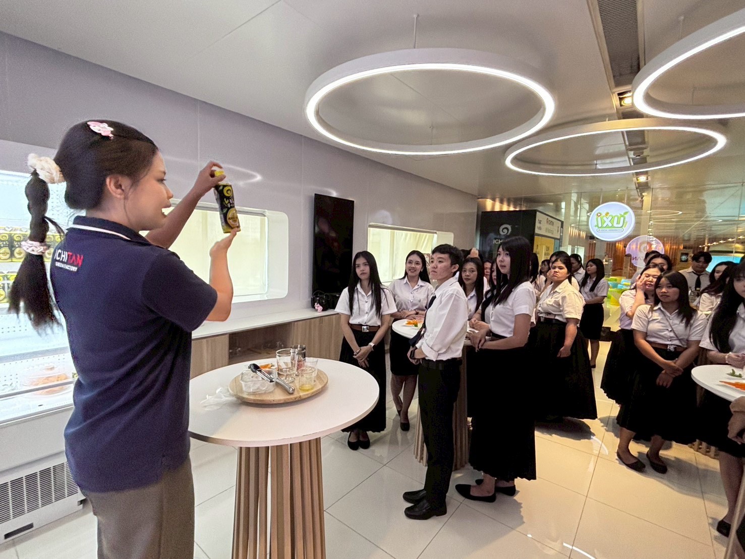 วันที่ 10 มีนาคม 2569 คณาจารย์สาขาการเงิน นำโดยอาจารย์จิราพร จิระชีวี ผู้รับผิดชอบโครงการ พร้อมด้วยผู้ช่วยศาสตราจารย์พรสวัสดิ์ สิงห์ยาม และอาจารย์กัลยา นารีจันทร์ นำนักศึกษาสาขาการเงิน ระดับประกาศนียบัตรวิชาชีพชั้นสูง ชั้นปีที่ 2 เดินทางไปศึกษาดูงาน ณ ศูนย์การเรียนรู้ตันแลนด์ ดินแดนแห่งความสมดุล จังหวัดพระนครศรีอยุธยา ภายใต้โครงการ “เรียนรู้การเงินนอกห้องเรียน สู่โลกความจริง (Finance Beyond Classroom)” ศึกษาดูงานเกี่ยวกับการปฏิบัติงานด้านบัญชีและการเงิน การวางแผนทางการเงิน การบริหารเงินทุนหมุนเวียน การวิเคราะห์แหล่งเงินทุน และการควบคุมความเสี่ยงทางการเงิน และกระบวนการผลิตเครื่องดื่มยอดนิยม ได้แก่ อิชิตัน กรีนที, เย็นเย็น, ชิซึโอกะ กรีนที, น้ำด่างวิตามินวอเตอร์ และ OEM (รับจ้างผลิต) โดยเน้นเทคโนโลยีการผลิตที่เป็นมิตรต่อสิ่งแวดล้อมที่ทันสมัยของศูนย์การเรียนรู้
