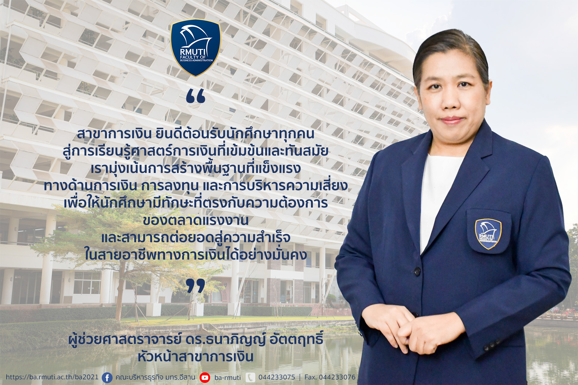 สาขาการเงิน คณะบริหารธุรกิจ มหาวิทยาลัยเทคโนโลยีราชมงคลอีสาน