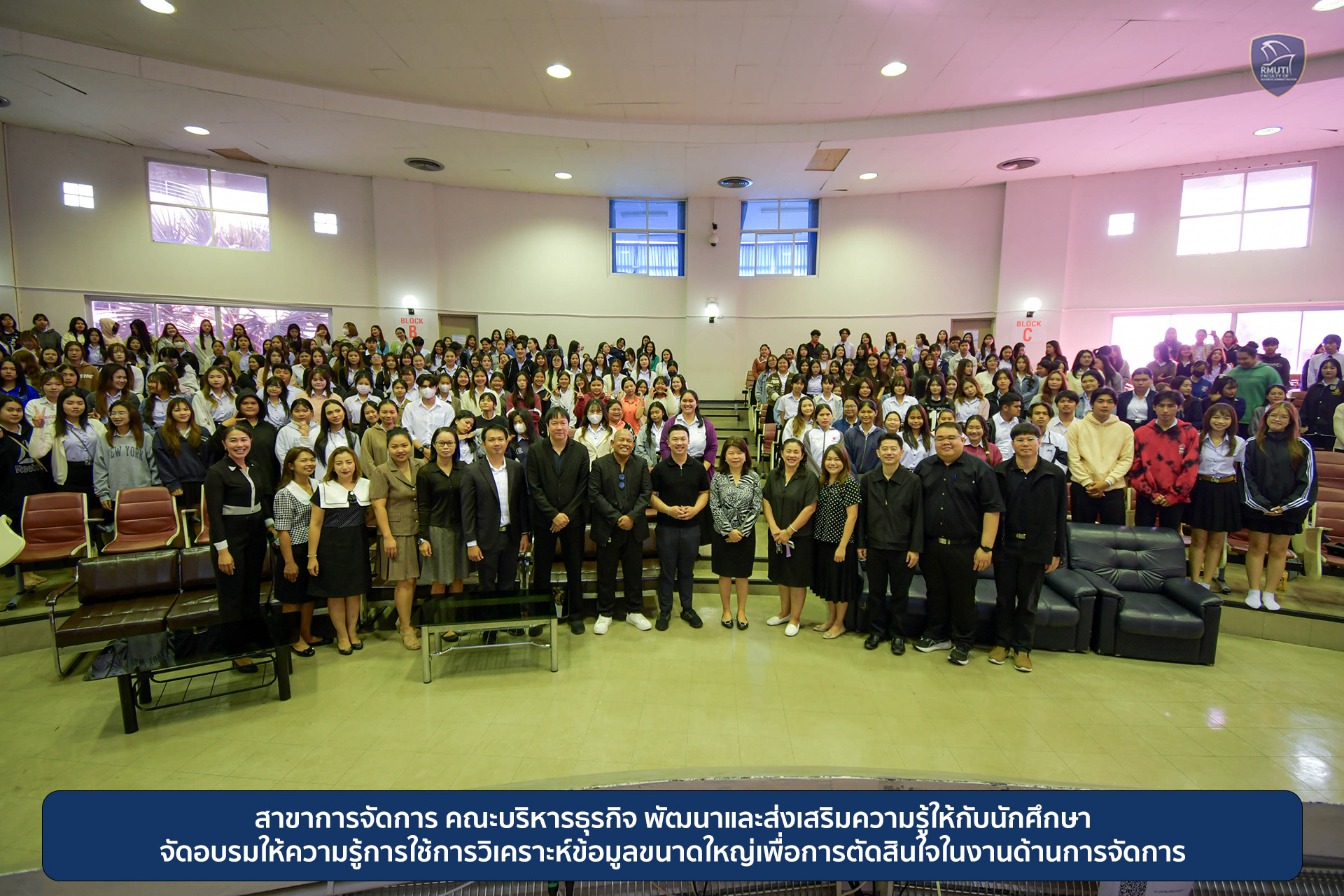 สาขาการจัดการ คณะบริหารธุรกิจ พัฒนาและส่งเสริมความรู้ให้กับนักศึกษา จัดอบรมให้ความรู้การใช้การวิเคราะห์ข้อมูลขนาดใหญ่เพื่อการตัดสินใจในงานด้านการจัดการ