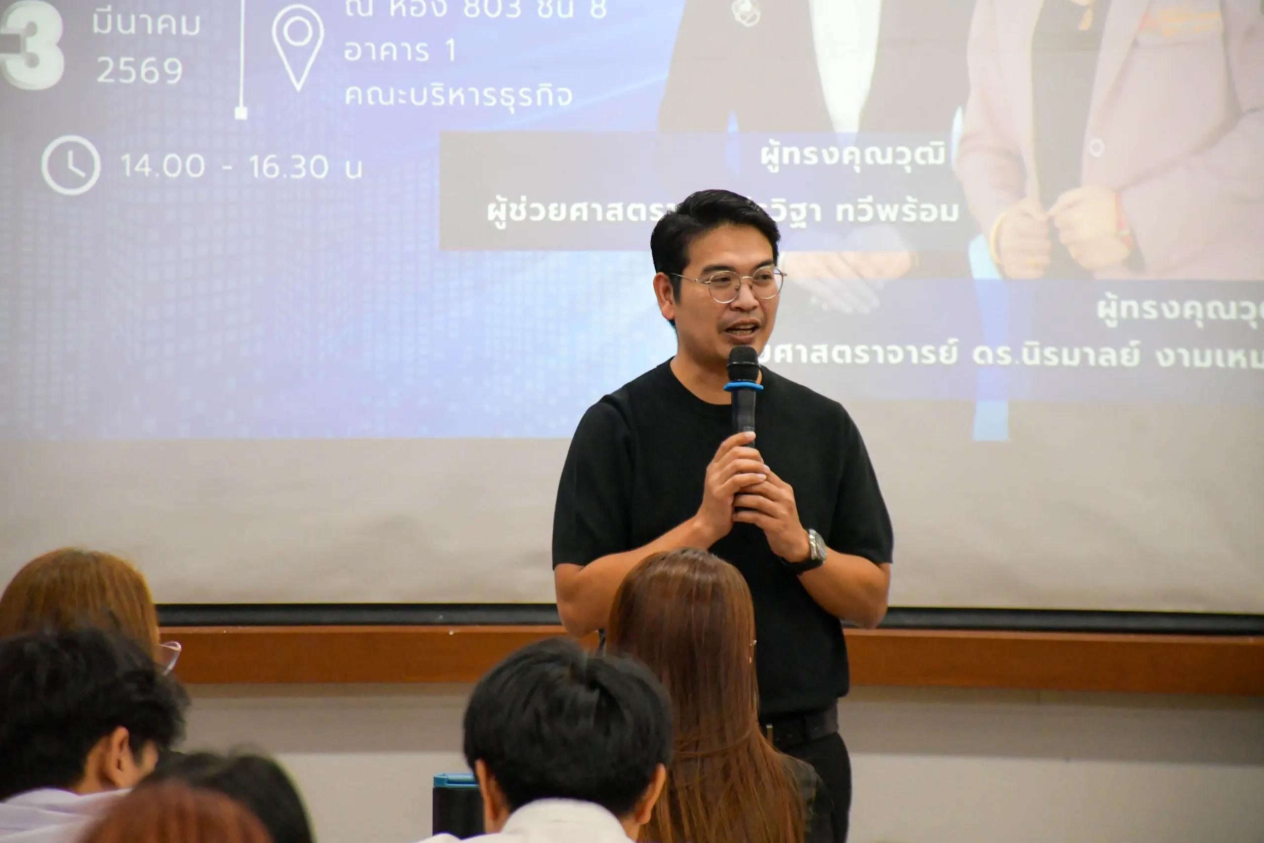วันที่ 13 มีนาคม 2569 สาขาการตลาด คณะบริหารธุรกิจ ได้จัดให้มีการนำเสนอผลงานวิจัยระดับปริญญาตรี ของนักศึกษาหลักสูตรบริหารธุรกิจบัณฑิต สาขาวิชาการตลาด ซึ่งทางสาขาวิชาฯ ได้เชิญ ผู้ช่วยศาสตราจารย์ ดร.นิรมาลย์ งามเหมาะ และผู้ช่วยศาสตราจารย์รวิฐา ทวีพร้อม อาจารย์ประจำสาขาการจัดการ มหาวิทยาลัยเทคโนโลยีราชมงคลอีสาน วิทยาเขตสุรินทร์ มาเป็นผู้ทรงคุณวุฒิประเมินผลวิจัย 5 บท และให้ข้อเสนอแนะเชิงวิชาการกับนักศึกษา ในรายวิชาการวิจัยการตลาด 01-404-031-408 โดยมีผู้ช่วยศาสตราจารย์ ดร.พงษ์นรินทร์ ปิดจัตุรัส เป็นผู้รับผิดชอบรายวิชา